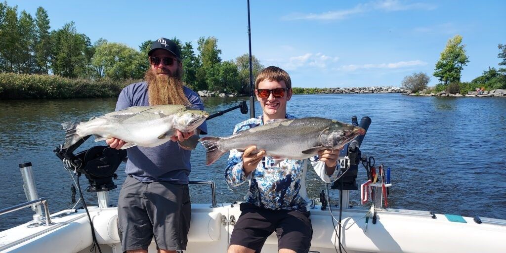 Atlantic Salmon are the crown jewel of Lake Ontario, and when you hook into one, you'll understand why anglers travel from all over to chase these silver rockets. They average 8-12 pounds but can push well over 20, and they fight with a combination of power and aerial acrobatics that'll test your skills and your tackle. Spring and fall are prime time, when they're staging near river mouths or cruising the thermal bars. What makes them special is their unpredictability – one minute they're hugging bottom, the next they're slashing through baitfish near the surface.